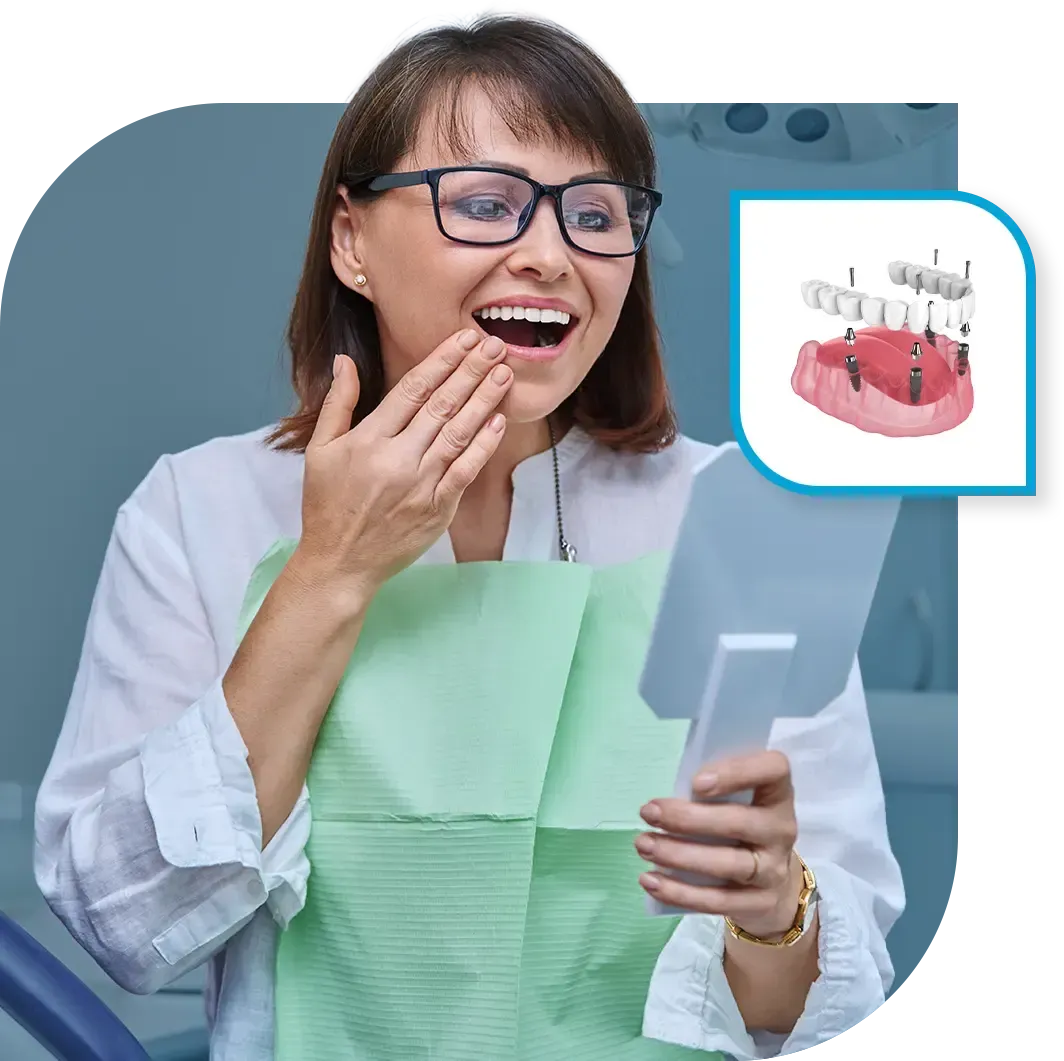 All-on-X® can be a great upgrade. Many people switch from dentures to implants for more stability and comfort. We can evaluate if this switch is right for you.